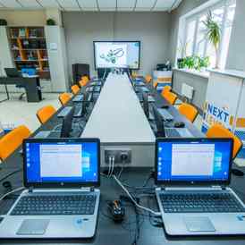 Аудитории в учебном центре NEXT LEVEL (Некст Левел) оборудованы с учетом современных технологий, комфорта и эстетики. Здесь есть дизайнерский интерьер, эргономичная мебель и современное оборудование. Профессиональные ноутбуки, планшеты, интерактивные проектор и дисплеи, документ-камера, 3D-принтер — все это доступно ребятам для использования.